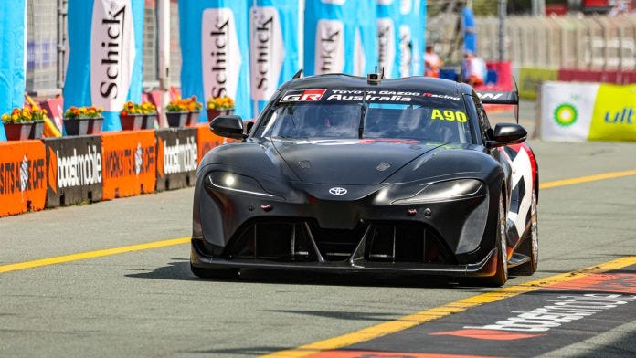 Top: Toyota Supra on track at Gold Coast 2025 (credit: Mark Walker via V8 Sleuth)
